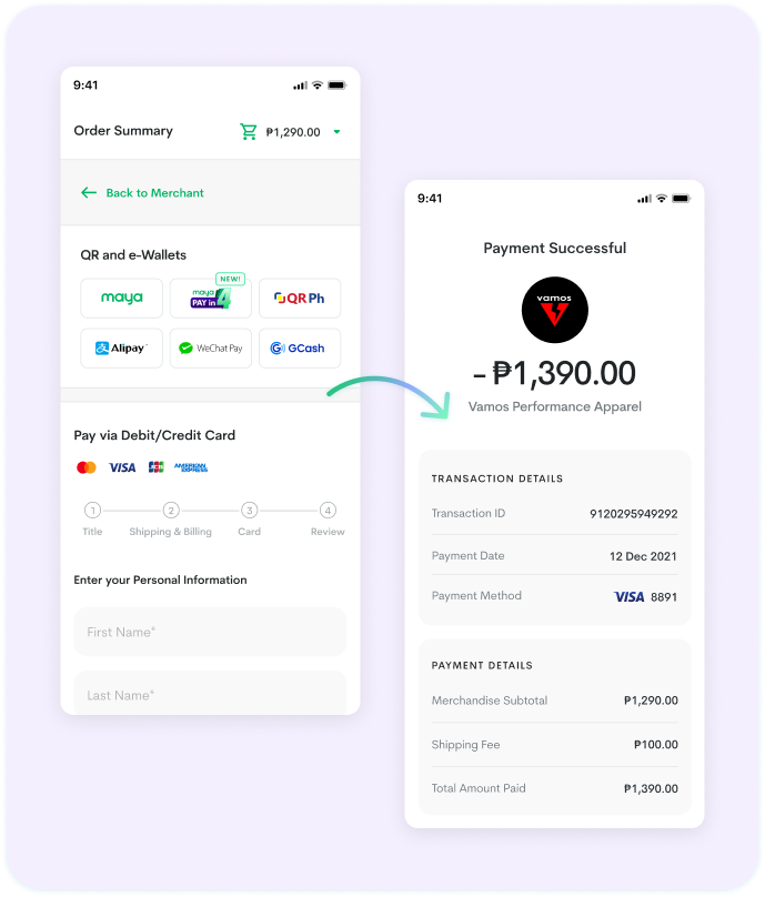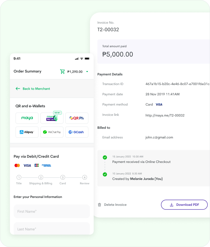 Lets your customers pay using cards or e-wallets using Maya checkout