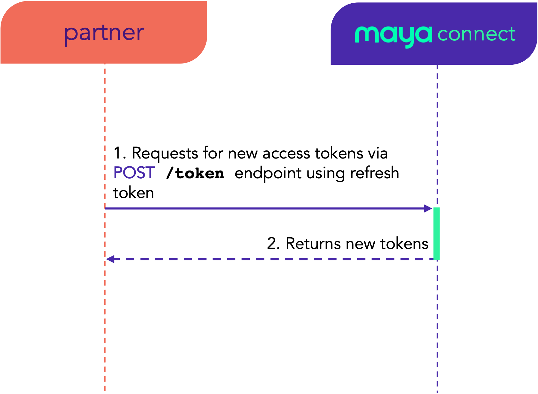 For every successful call, the API returns fresh tokens – the User Access Token (access_token) and the Refresh Token (refresh_token). At the same time, Maya Connect will invalidate the previous ones.